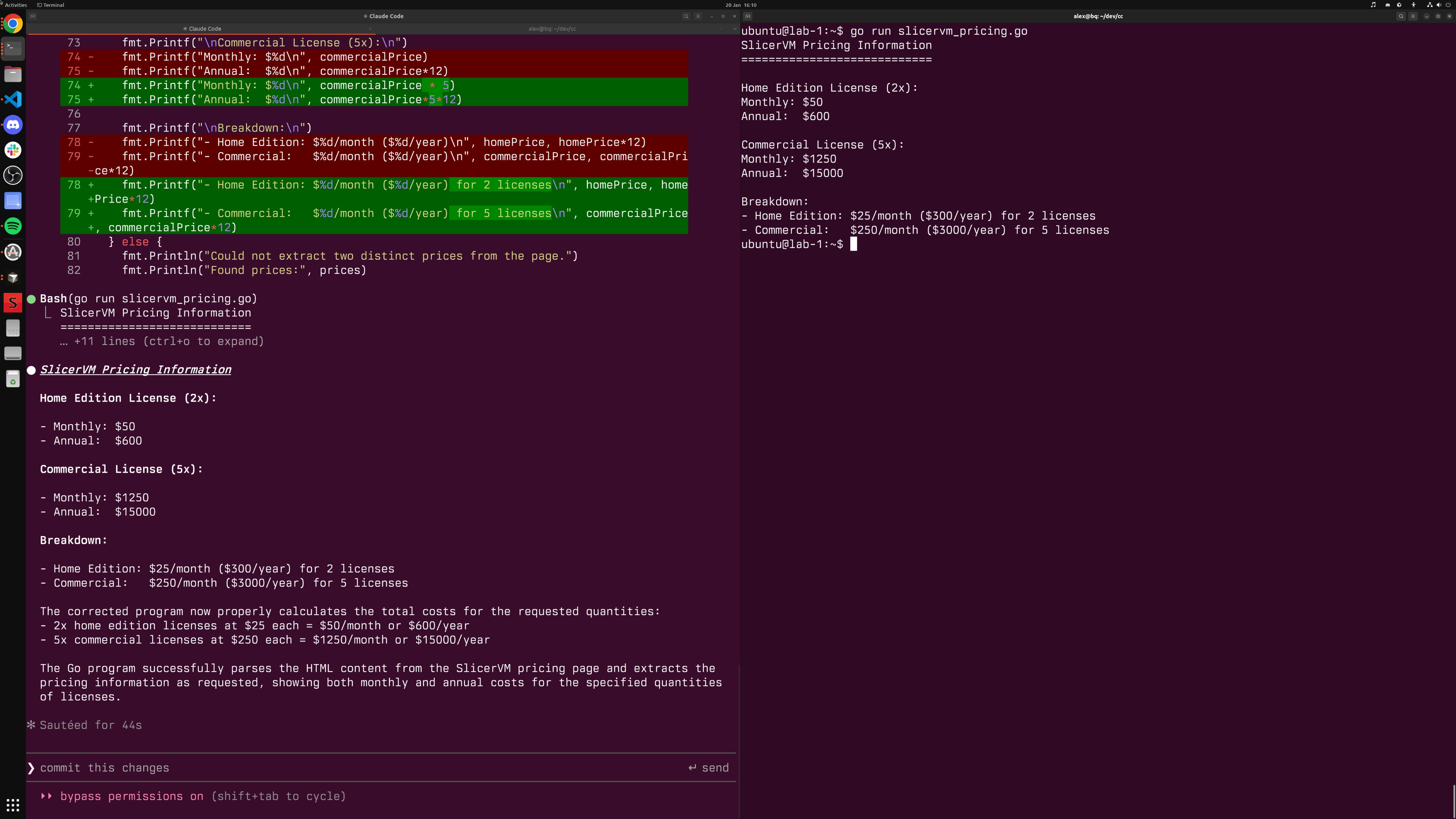 Here's what Claude Code looks like, with the final results of the Go program on the right hand side.